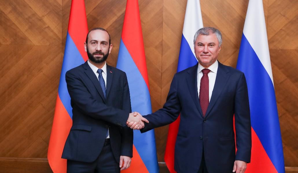 Находящаяся с официальным визитом в Российской Федерации делегация во главе с председателем Национального Собрания Республики Армения Араратом Мирзояном встретилась со своими российскими коллегами во главе со спикером Государственной Думы Федерального Собрания РФ Вячеславом Володиным.
