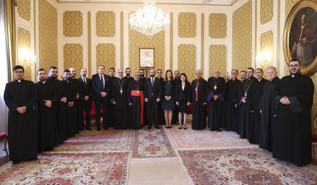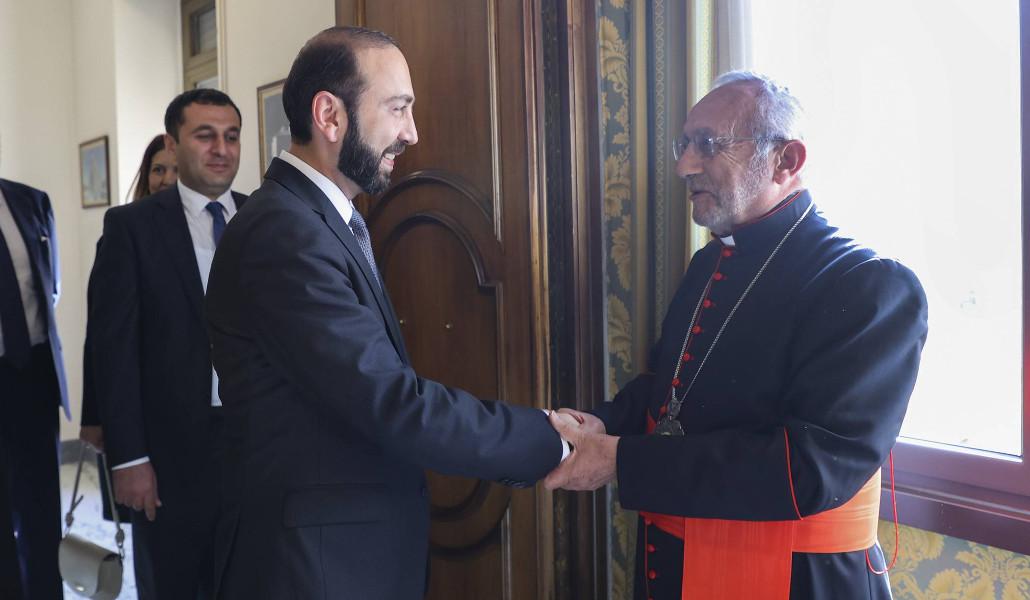 Поддержи А1+!В рамках официального визита в Ватикан министр иностранных дел Армении Арарат Мирзоян 26 октября посетил армянский католический колледж “Левонян”, где встретился с Католикосом-патриархом Дома Киликийского Армянской Католической церкви Рафаэлем Петросом Минасяном.