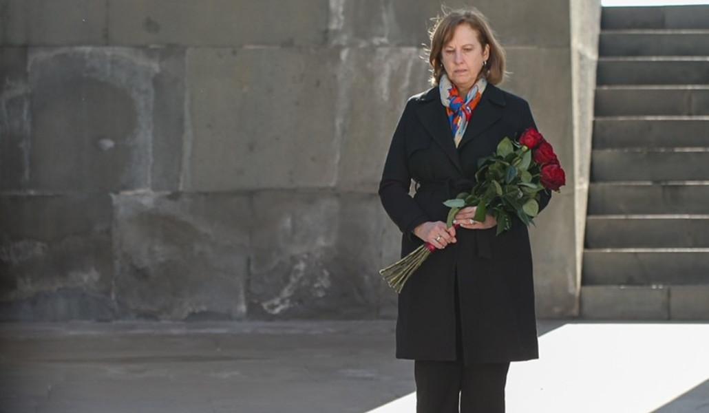 «Посол Куинн возложила цветы к Мемориалу в Цицернакаберде, отдав дань памяти жертвам Геноцида армян», - говорится в сообщении посольства.