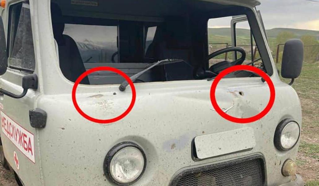 «На фотографиях-машина скорой помощи, в направлении которой сегодня в районе 16:15 ВС Азербайджана открыли огонь», - говорится в записи.