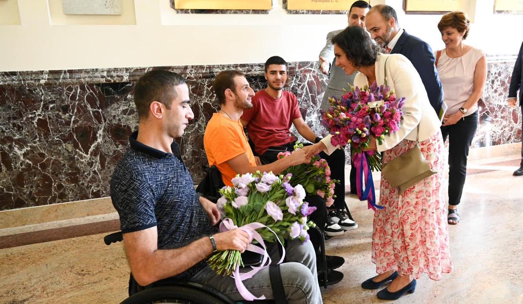 Поддержи А1+!Министр иностранных дел Бельгии Хаджа Лахбиб посетила Реабилитационный центр "Дом солдата", где проходят лечение военнослужащие, получившие тяжелые ранения.